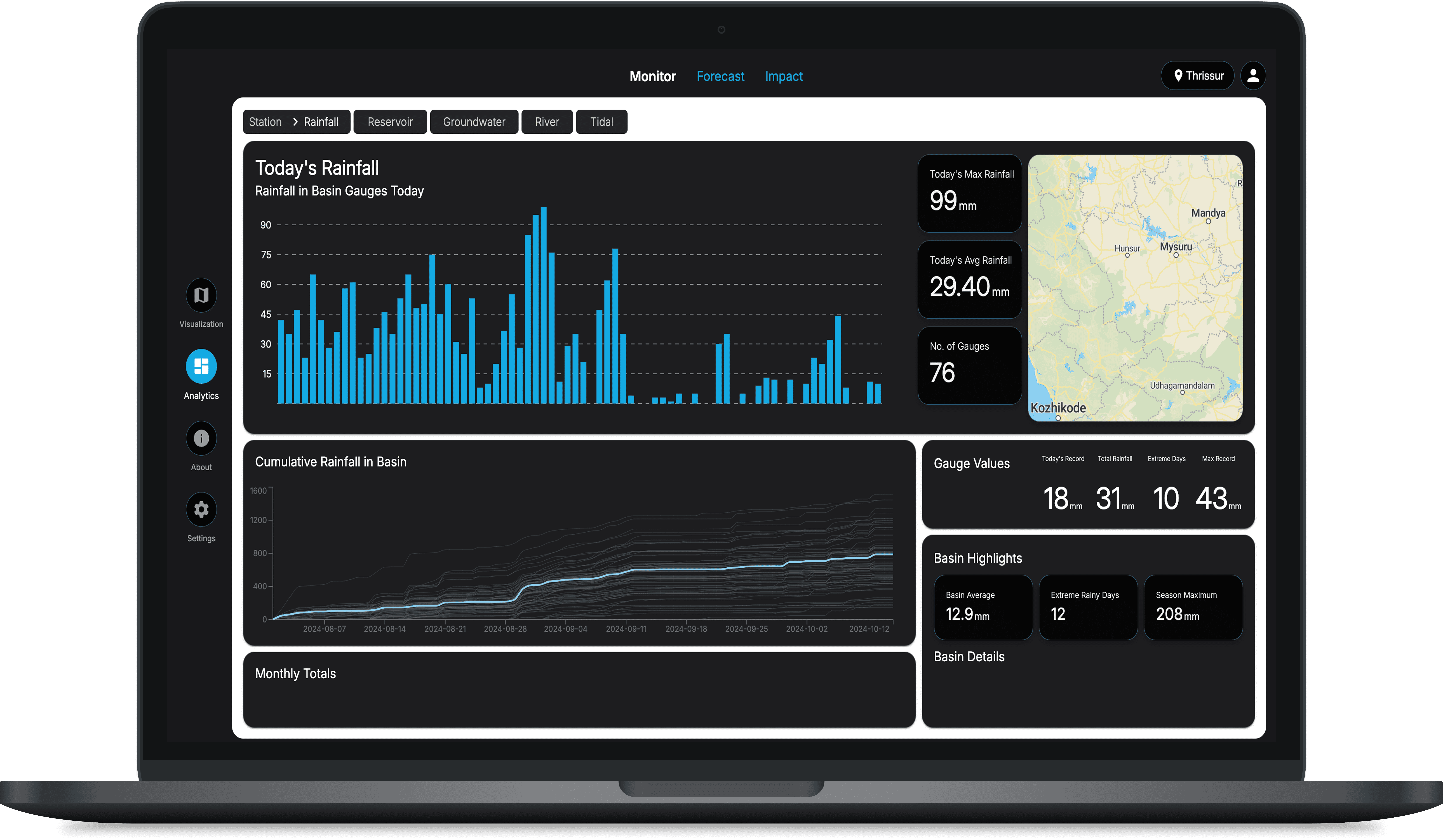 The dashboard transforms community-sourced data into actionable flood forecasts and impact visualisations. It provides a centralized platform for monitoring, forecasting, and decision-making—bridging the gap between on-the-ground realities and early action.